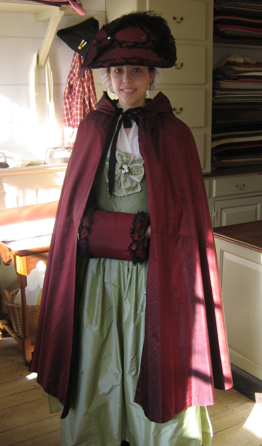 There is still one thing I'm not sure about. I can't tell if the original has any trim at the neck. I like it plain like this, and I will be wearing it with a lace fichu (very like the original's, and it will be fastened with the breast knot) but I wonder if it SHOULD have trim? It would be the same box pleated scalloped frill, just a lot narrower. I'd be very happy not to have to cut out any more scallops that's for sure!!